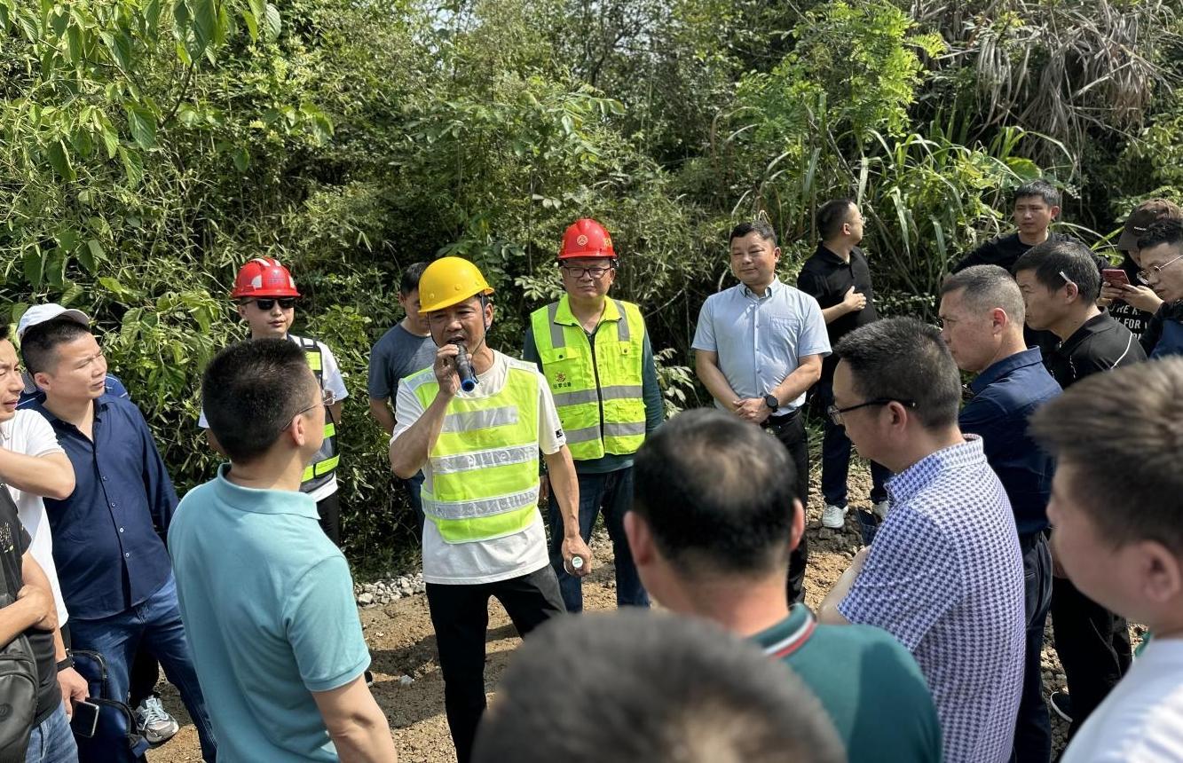 觀摩組在S508線路面改善工程施工現場了解舊水泥混凝土板全厚式就地冷再生工藝